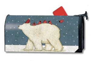 Add this happy mailbox cover to your winter landscape decor and add a cheery mood to chilly winter mornings all season long. Guaranteed to melt the heart of even the coldest mailman, the mailbox cover features a polar bear out for a stroll in the flurries along with all his bright red cardinal buddies. A mailbox cover that will really up the ante on your home's curb appeal, add it to your cart today and be ready when those first flakes arrive!