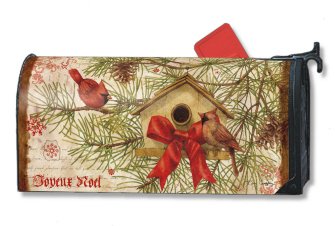 Cardinals in Pine Mailbox Cover Winter Mail Wrap Feature